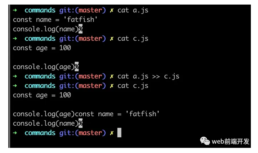 ➜ commands git:(master) ✗ cat a.js