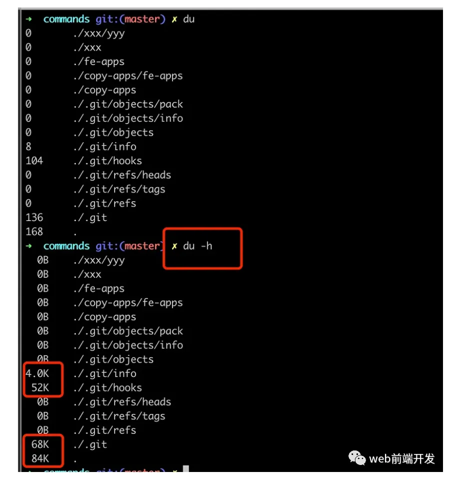 ➜ commands git:(master) ✗ du -h